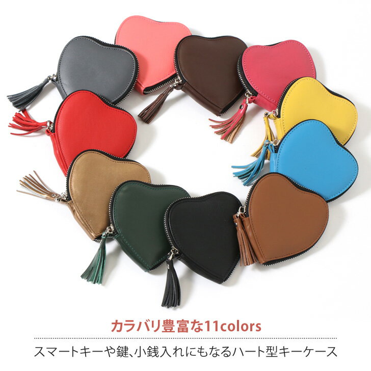●カラバリ豊富!スマートキーや鍵、小銭入れにもなるハート型キーケース ※生産・入荷時期により若干、色味や仕様が変更となる場合がございます。